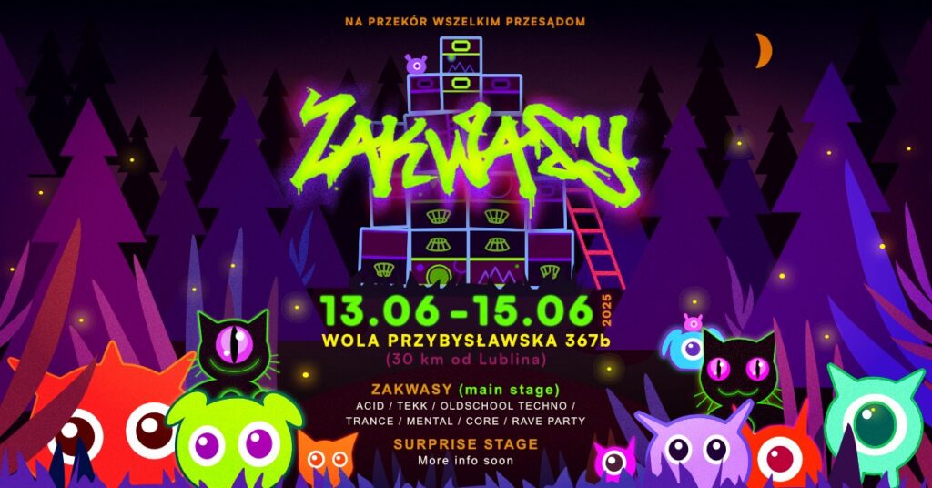 Wieści od naszych skrzatów głoszą, że ponownie nadszedł czas, by wspólnie wskoczyć w otchłań intensywnych dźwięków i niezapomnianych wrażeń – ZAKWASY (część druga) nadchodzą wielkimi krokami! Tym razem gramy na przekór wszystkim przesądom, a startujemy w piątek 13 czerwca 2025 w tym samym miejscu co pierwsza edycja.